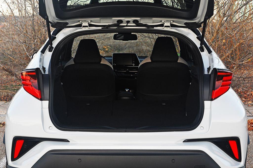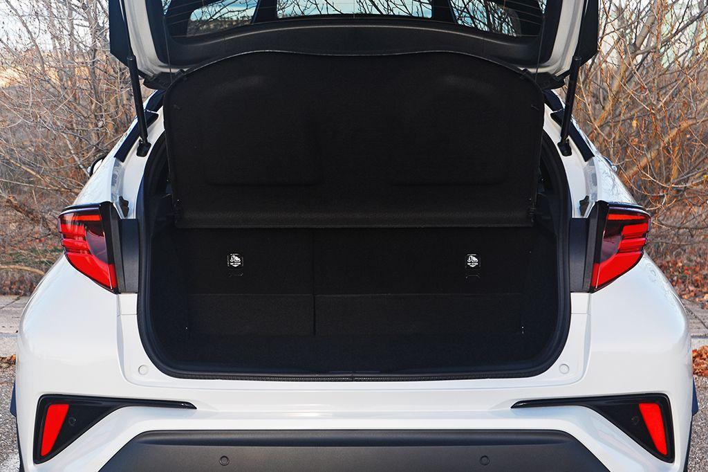 Además de todo lo comentado, el C-HR es un coche muy práctico para el día a día. El conductor tiene a su alcance una serie de compartimentos que hacen que la vida a bordo sea mucho más confortable. No falta una bandeja para el smartphone con conexión USB incluida (podía ser un poco más grande); dos posavasos ubicados delante y detrás del mando del cambio; una guantera suficientemente capaz para guardar la documentación y varios objetos extra; bolsas en las puertas delanteras y un posavasos en cada una de las traseras; y un apoyabrazos que descubre un cofre que integra una toma de 12V.