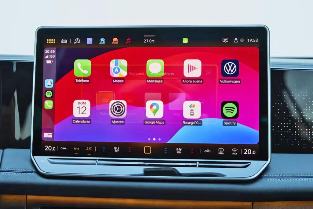 El cuadro de instrumentos digital de 10,25 pulgadas es de serie y ofrece buena resolución y múltiples configuraciones. La pantalla central, de 12,9 pulgadas o 15 pulgadas según versión, concentra prácticamente todas las funciones del vehículo, incluyendo climatización, asistentes y sistemas multimedia. El nuevo sistema MIB4 es más rápido y lógico que antes, aunque la dependencia del tacto sigue siendo uno de los puntos discutibles en uso cotidiano.
